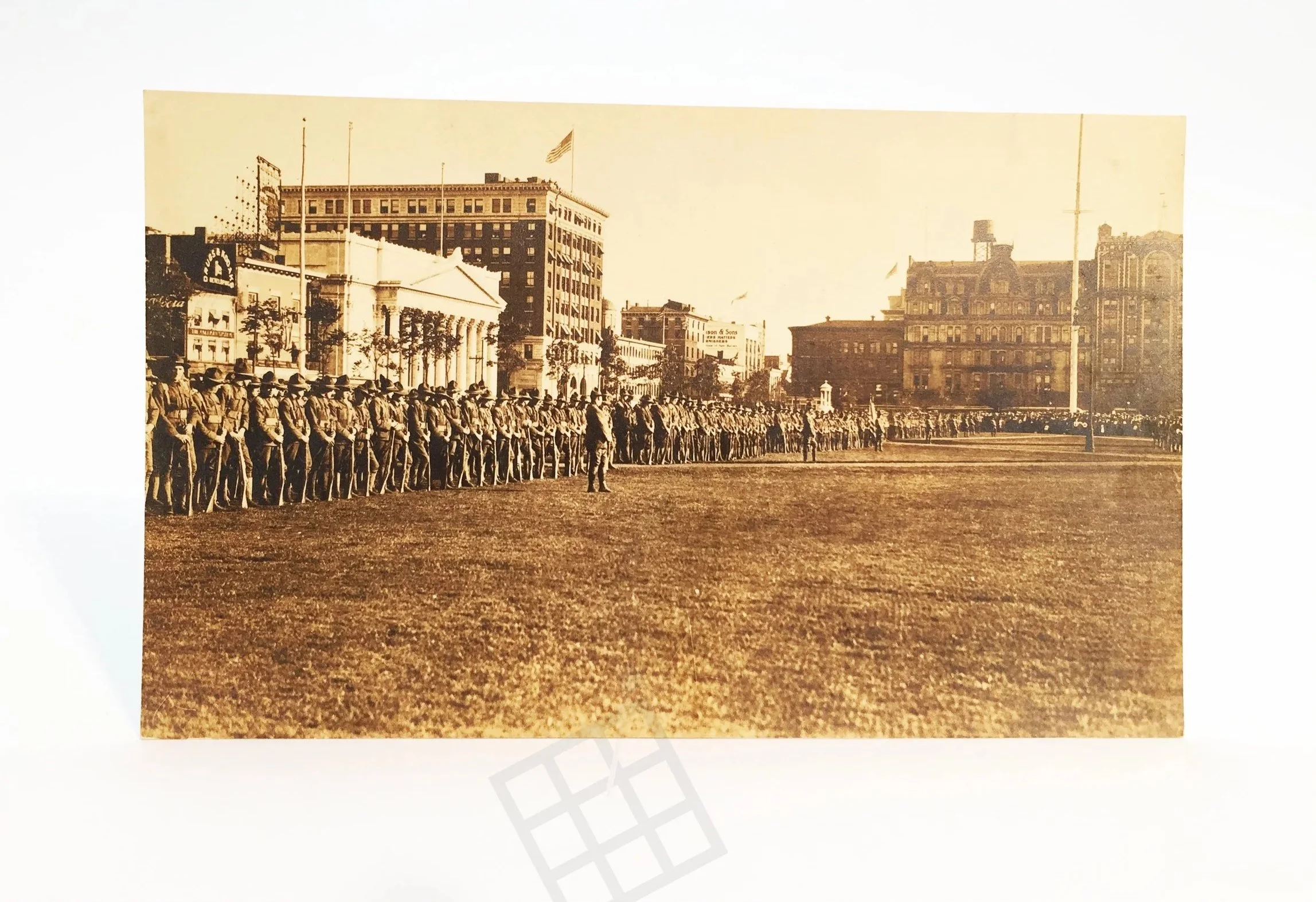 Historic photograph of WWI soldiers gathered on the Green.