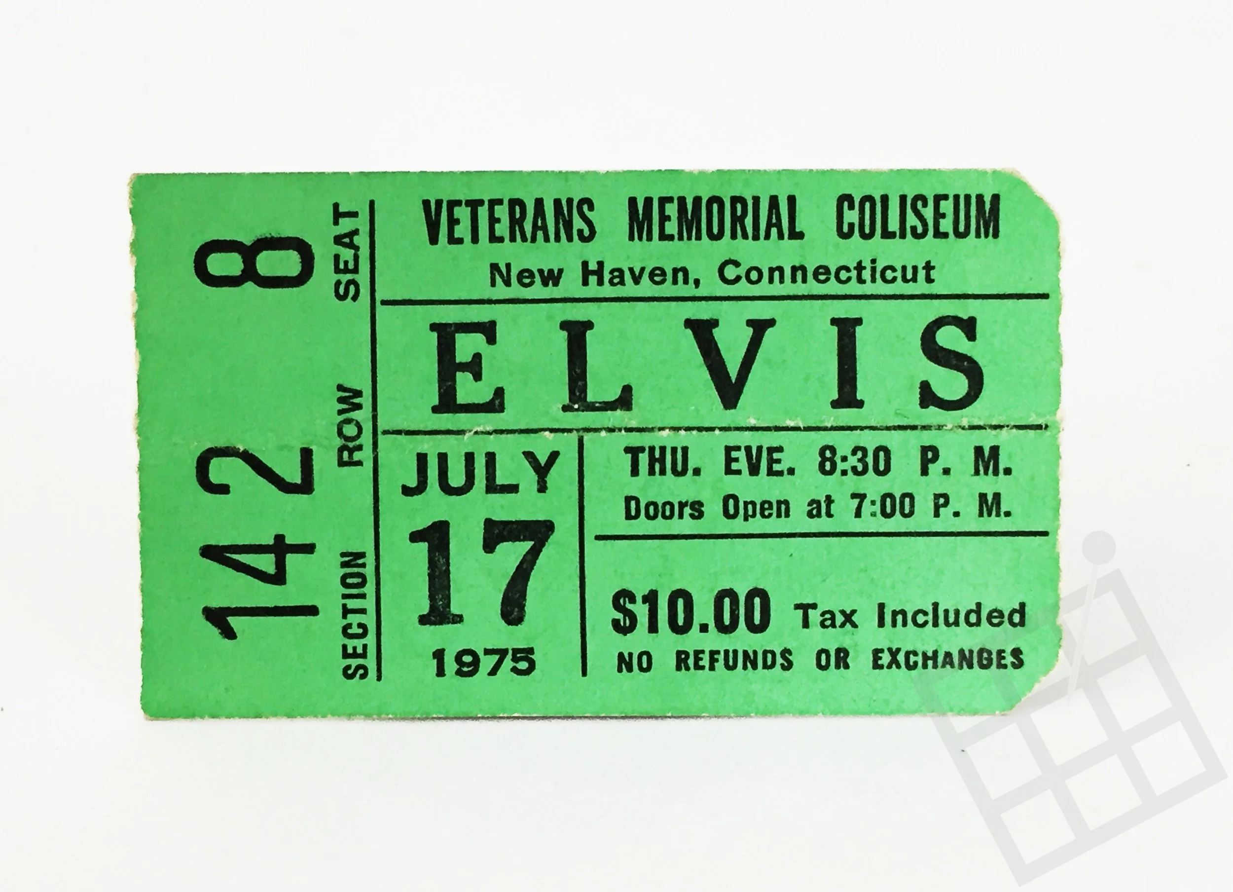 Elvis concert ticket, New Haven Veterans Memorial Coliseum, 1975.
