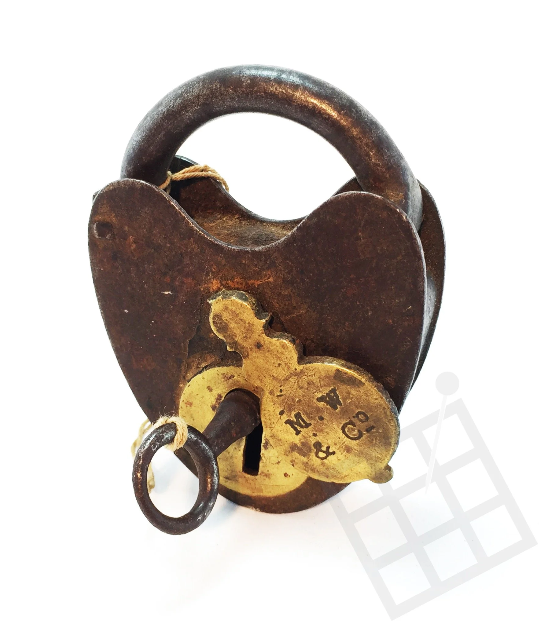 Mallory Wheeler & Co. (1834 - 1913) padlock and key.