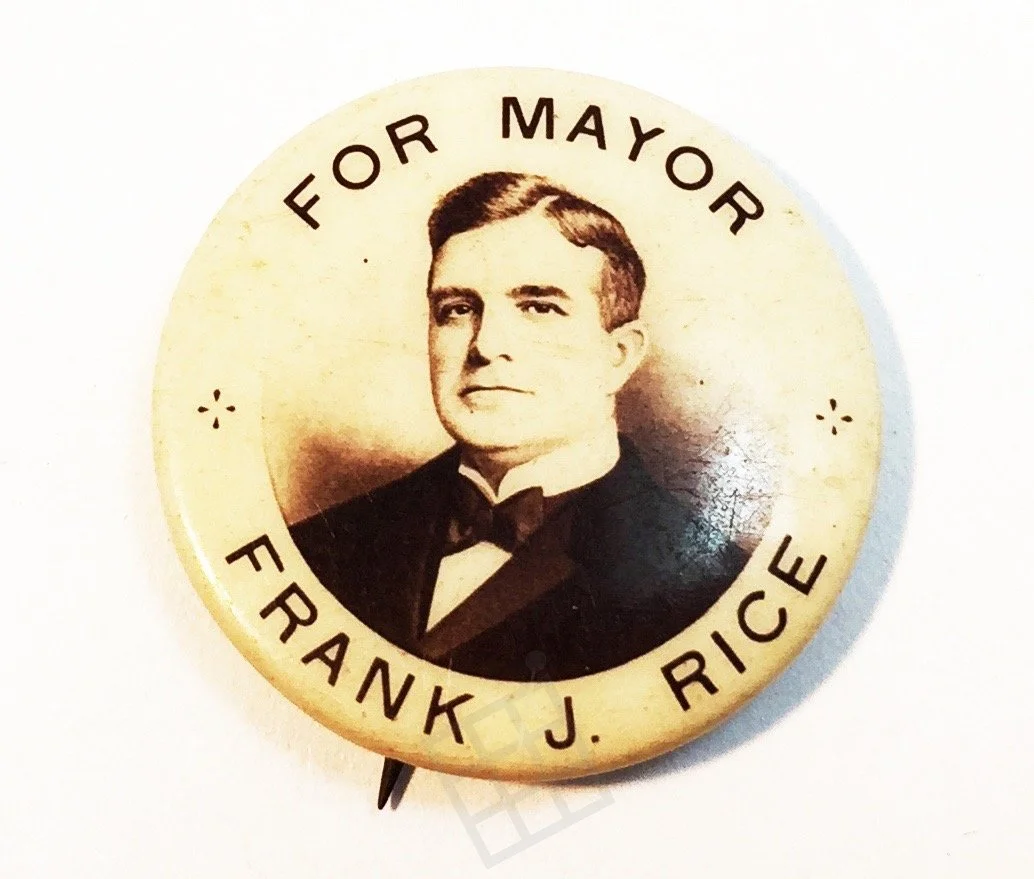 Frank J. Rice campaign button, c. 1910.