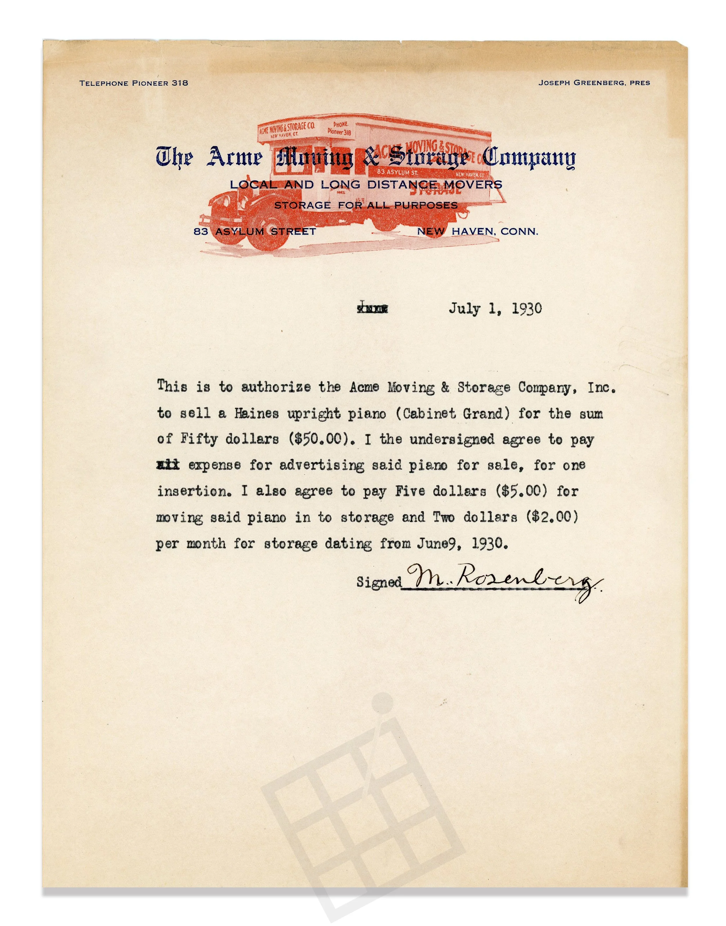 Acme Moving & Storage Co. letterhead, 1930.