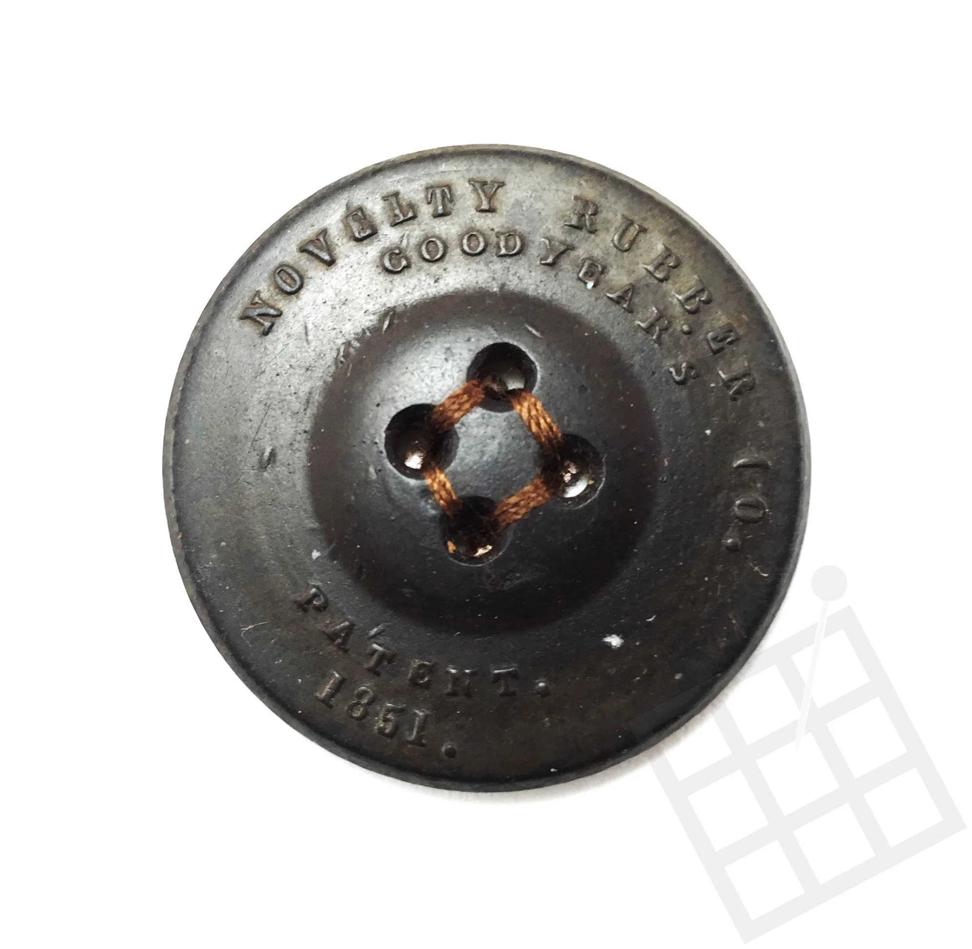 1851 Goodyear patent rubber button, Novelty Rubber Co.